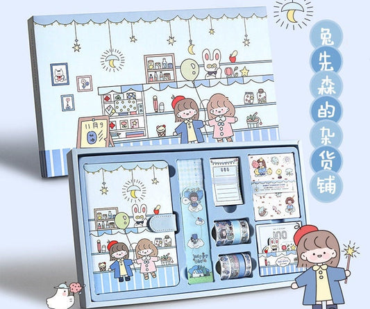 Bunny's Grocery Store 186 Pcs Gift Set Box Blue Journal Kit