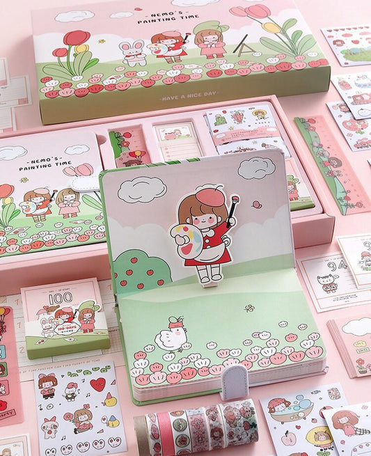 Nemo's Painting Time 186 Pcs Gift Set Kawaii Box Journal Kit Pink Stationery