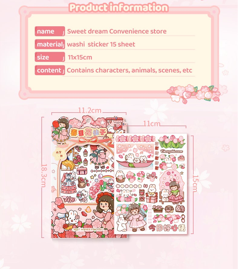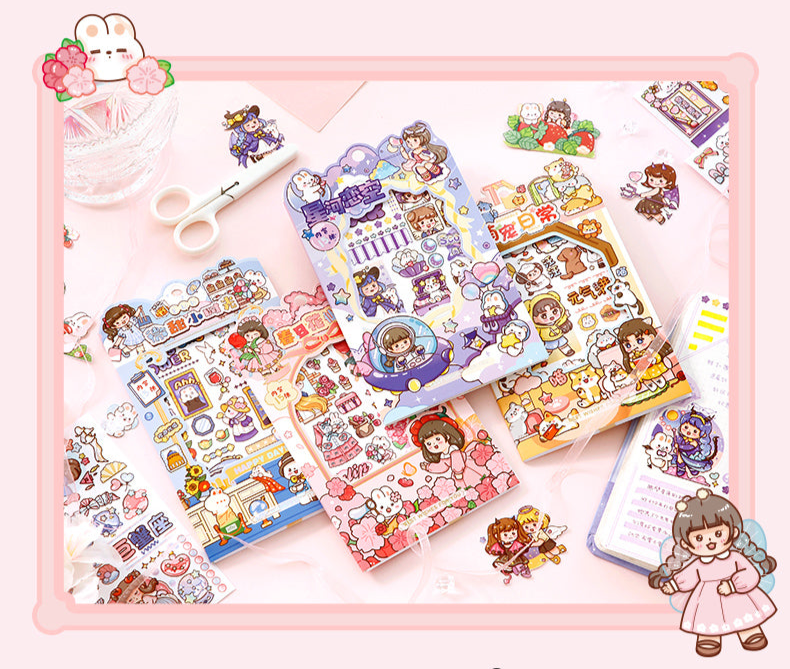 Transform your personal planners and crafts into works of art with this set of 15 cute sticker sheets. Stickers are the perfect decoration for personal planners, crafts and scrapbooks. Make your diary or planner cuter than ever with these kawaii scene cartoon girl stickers. Decorate your bullet journal spreads, scrapbooks, DIY projects, notebooks or any other creative projects with these washi tape sticker sheets.